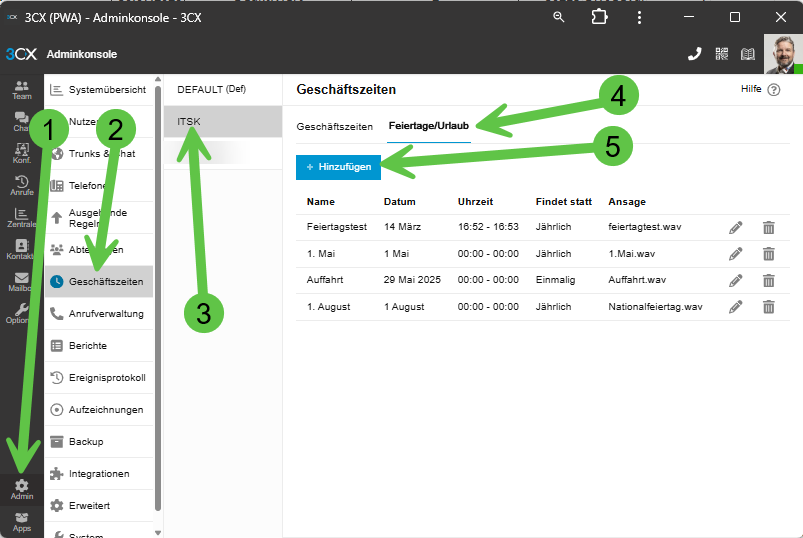 Seit heute (14.03.2025) lässt sich die 3CX Ferien- und Feiertagsansage wieder einfach programmieren.